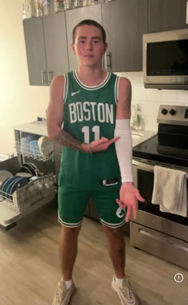 He was dressed in a green-and-white Boston Celtics jersey for Halloween, but was seen wearing a black hooded jacket, light-colored pants, and black Nike sneakers with white soles in footage that captured him approaching the bridge.