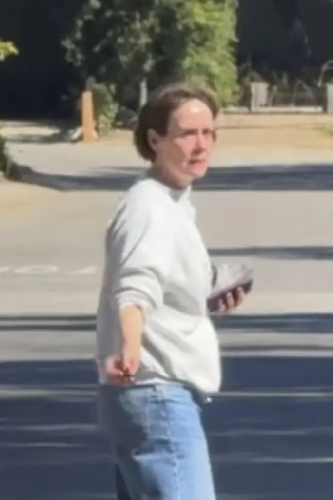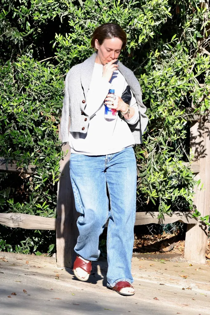 The “American Horror Story” actress, 50, appeared distraught during the visit and at another point was seen hugging a person outside.