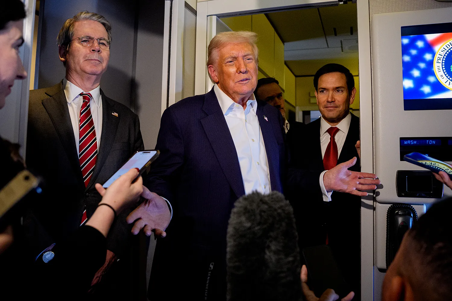 President Donald Trump aboard Air Force One on Oct. 27, 2025.