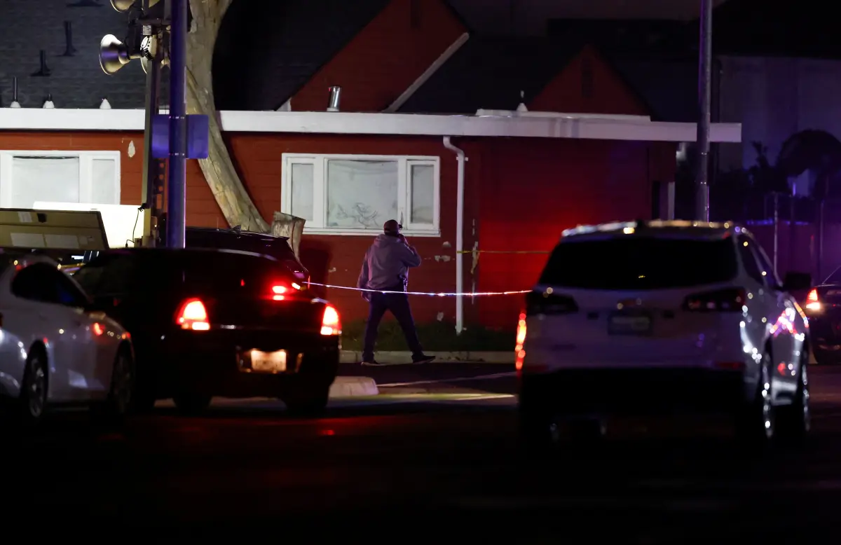 Police respond to the scene of a mass shooting in Stockton, Calif., on Saturday night.