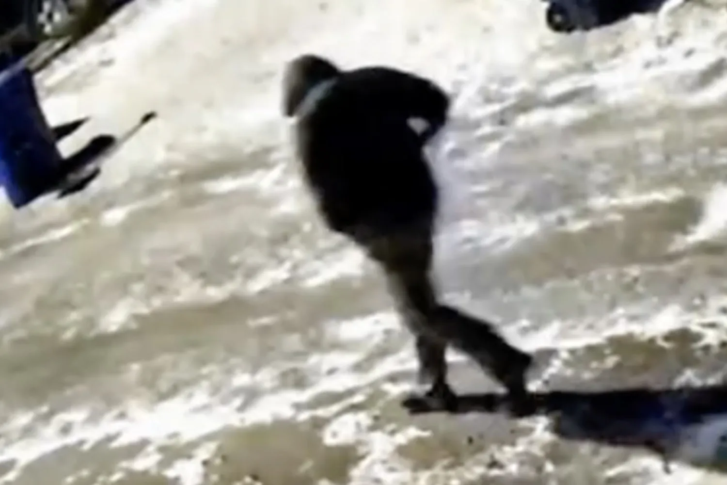 The person of interest was wearing a dark hooded sweatshirt and lighter pants, with their hands in their pockets. Their face could not be seen.