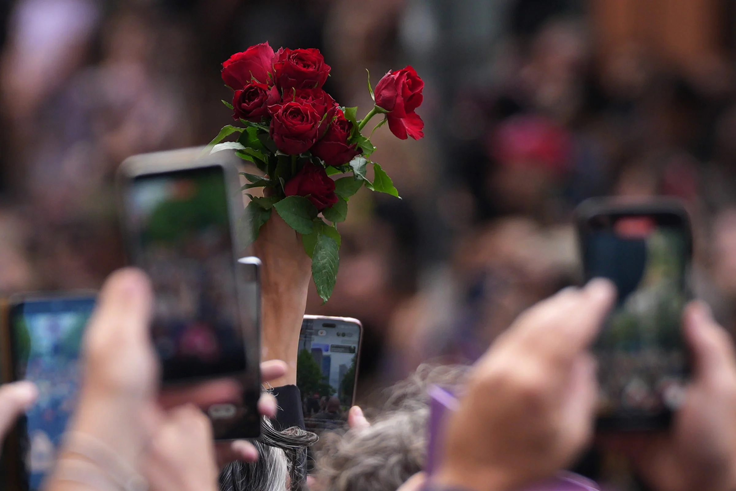 In a touching moment, Sharon was seen laying a bouquet of blooming red roses among the sea of flowers.