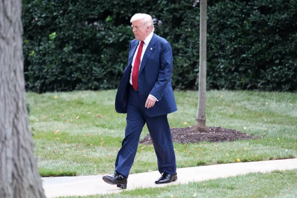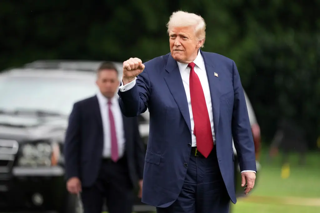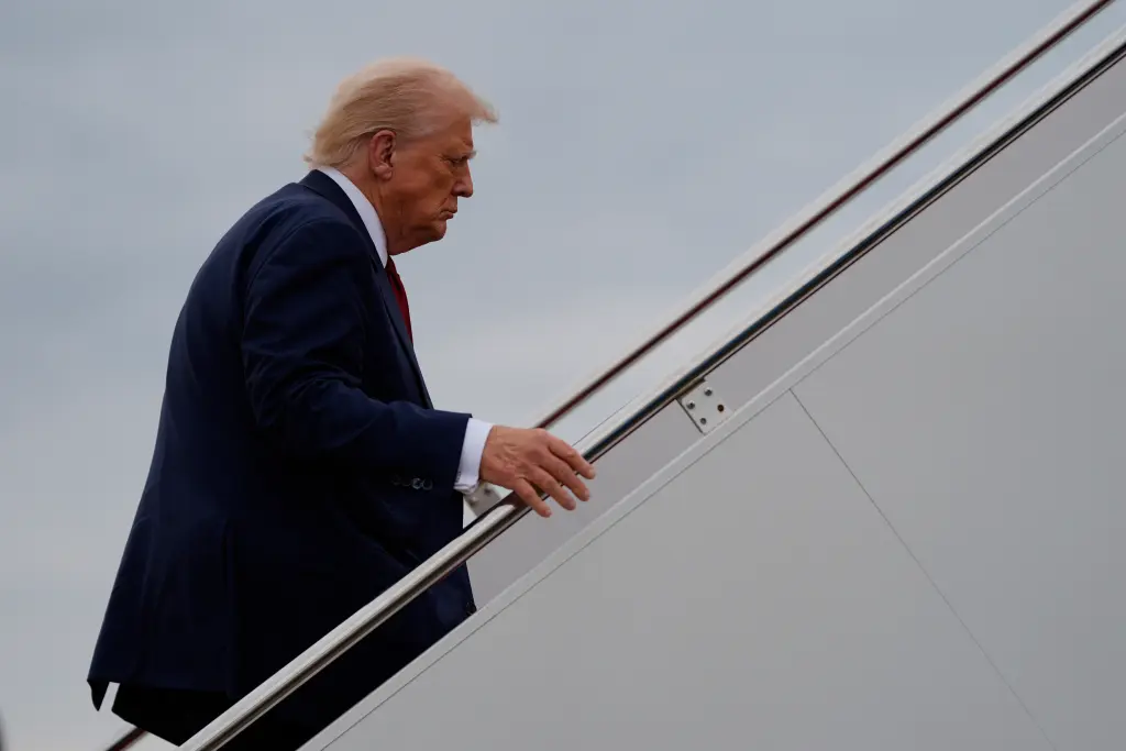 President Donald Trump boards Air Force One on August 1, 2025 at Joint Base Andrews, Maryland.