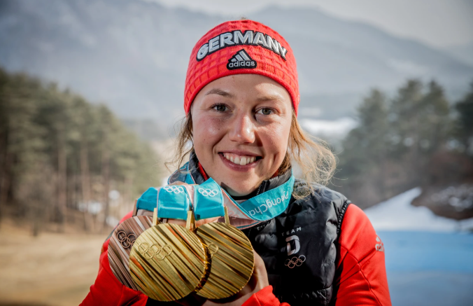 At the 2018 Winter Olympics in PyeongChang, Dahlmeier made more history, becoming the first woman to win both the sprint and pursuit biathlon events at a single Games. She also earned a bronze medal in the individual 15km race, bringing her Olympic medal total to three.