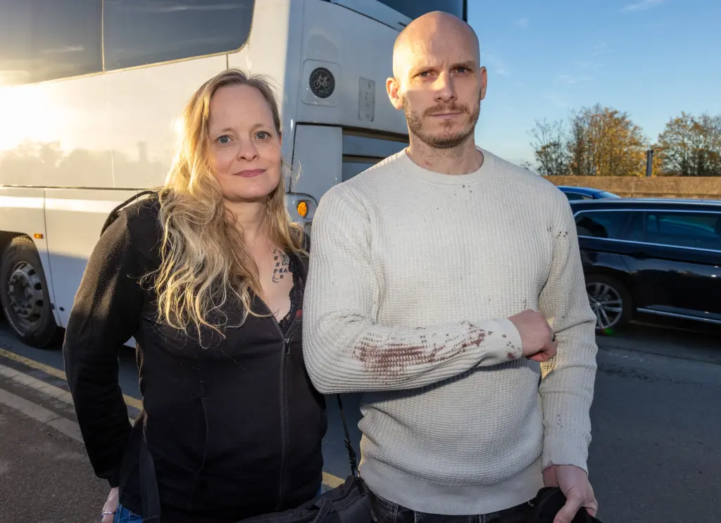 Andy Gray and Dayna Arnold 48 were on the train at Peterborough — and Dayna begged the attacker to let her live. Phil HarrisOfficials arrive near the scene of the stabbing. AFP via Getty Images
